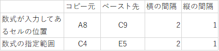 この様に、ペーストした場所が元のコピー場所から移動した分だけ、指定範囲の場所も移動する、という機能がエクセルにはあります。